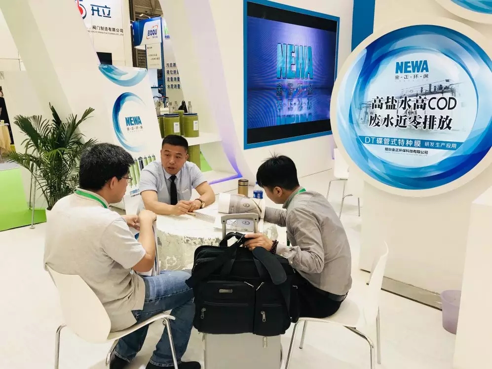 金正環保市場部部長王少嬡在展會同期“2018膜法在華東地區工業節水與水處理行業中應用研討會”上,作《DTRO膜在工業園區高鹽廢水中的應用》的現場報告,用多個成功案例介紹金正環保標準化,模塊化,集裝箱式DT特種膜設備的卓越效果,多位聽眾現場咨詢合作模式。