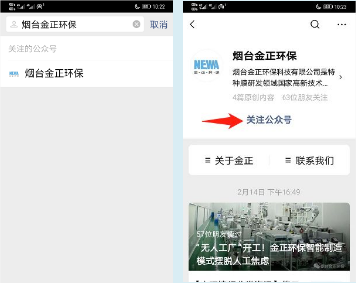 打開手機微信,添加公眾號“煙臺金正環(huán)?!?;