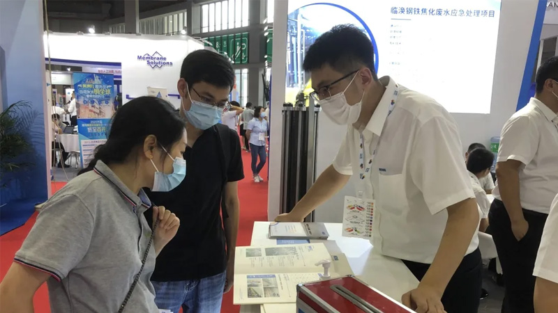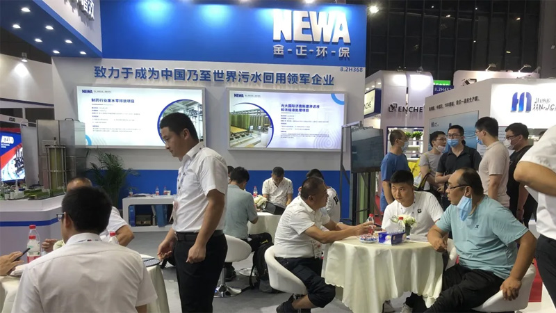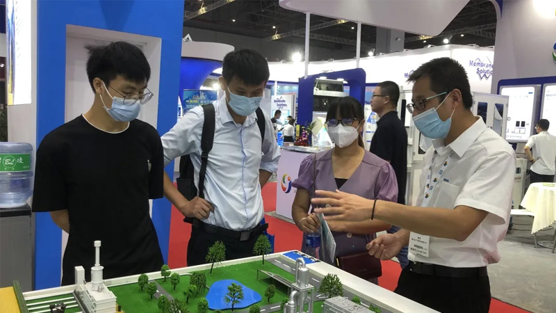 雖然展會期間天氣炎熱,但是酷暑并沒有阻擋住客戶的腳步和熱情。金正環保帶著第三代導流盤、100bar膜組件、DTRO試驗樣機和CDRO系列膜組件,以及各領域的解決方案、核心工藝包贏得了眾多工程公司和客戶的青睞,關注、咨詢的人絡繹不絕,熱鬧非凡。