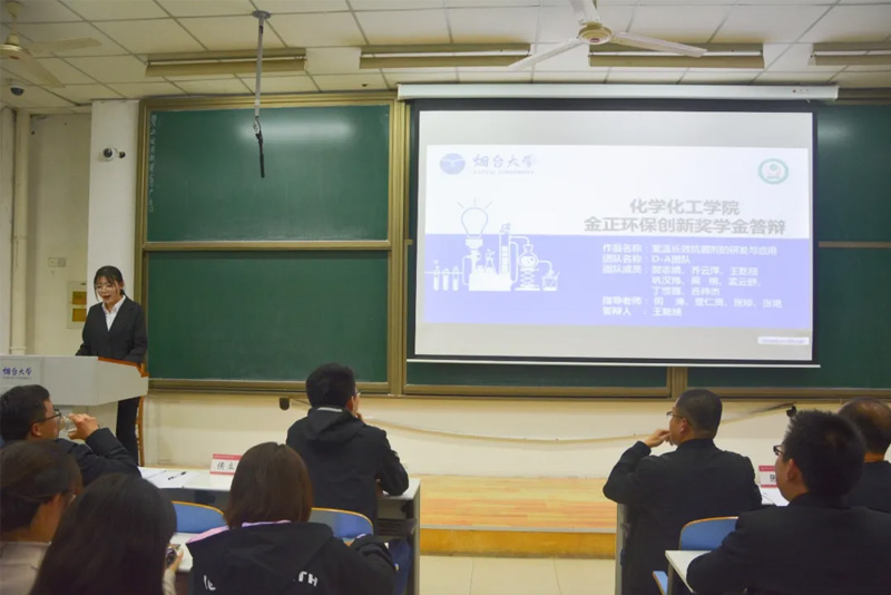 10月29日晚,煙臺大學(xué)化學(xué)化工學(xué)院年度金正環(huán)保創(chuàng)新獎學(xué)金答辯活動在學(xué)校綜合樓205室開展,經(jīng)過學(xué)院初選,包含革新“涂”強(qiáng)團(tuán)隊(duì)等在內(nèi)的18支個(gè)人和團(tuán)隊(duì)進(jìn)入最終答辯環(huán)節(jié),大賽設(shè)一等獎3名,二等獎4名,三等獎3名,共10位個(gè)人/團(tuán)隊(duì)獲獎。