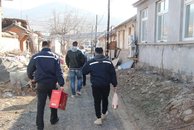 一滴水能折射出太陽的光輝,一份愛能體現社會的溫暖。在春節來臨之際,金正環保心系困難群眾,在萊山經濟開發區管委支持下,2月8日,公司員工代表走訪慰問了萊山區域內的6個村、31戶困難家庭。這些困難家庭成員均是患有重大疾病和年邁的孤寡老人,金正環保將承載著滿滿愛心的大米、花生油、面食禮盒等慰問品送到他們家中,關心和詢問他們的生活狀況,并送上新春祝福。