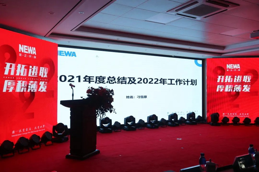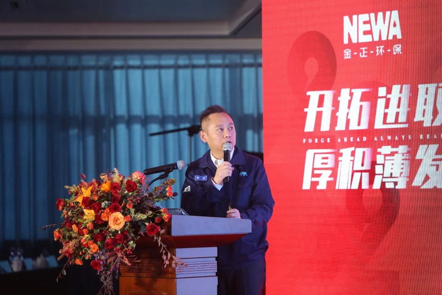 2021年是不平凡的一年,是收獲滿滿的一年。一部《金正2021年度大事記》視頻短片拉開了表彰大會的序幕。大事記短片以時間軸的方式展現(xiàn)了2021年全體金正人用拼搏和努力在污廢水處理行業(yè)取得的收獲與成果。