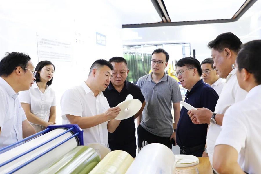 申有青一行深入公司大數(shù)據(jù)中心、膜中心、組裝車間等展開實(shí)地調(diào)研。李越彪向來訪客人介紹了企業(yè)產(chǎn)業(yè)布局、核心產(chǎn)品、核心技術(shù)、成本優(yōu)勢、智能制造、項(xiàng)目案例等情況。李越彪表示,希望通過此次活動(dòng),增進(jìn)雙方的交流合作,在產(chǎn)學(xué)研融合、校企合作等領(lǐng)域開辟新機(jī)遇。