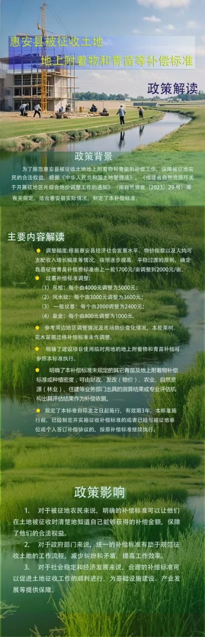 【一圖看懂】關(guān)于《惠安縣被征收土地地上附著物和青苗等補(bǔ)償標(biāo)準(zhǔn)》政策解讀