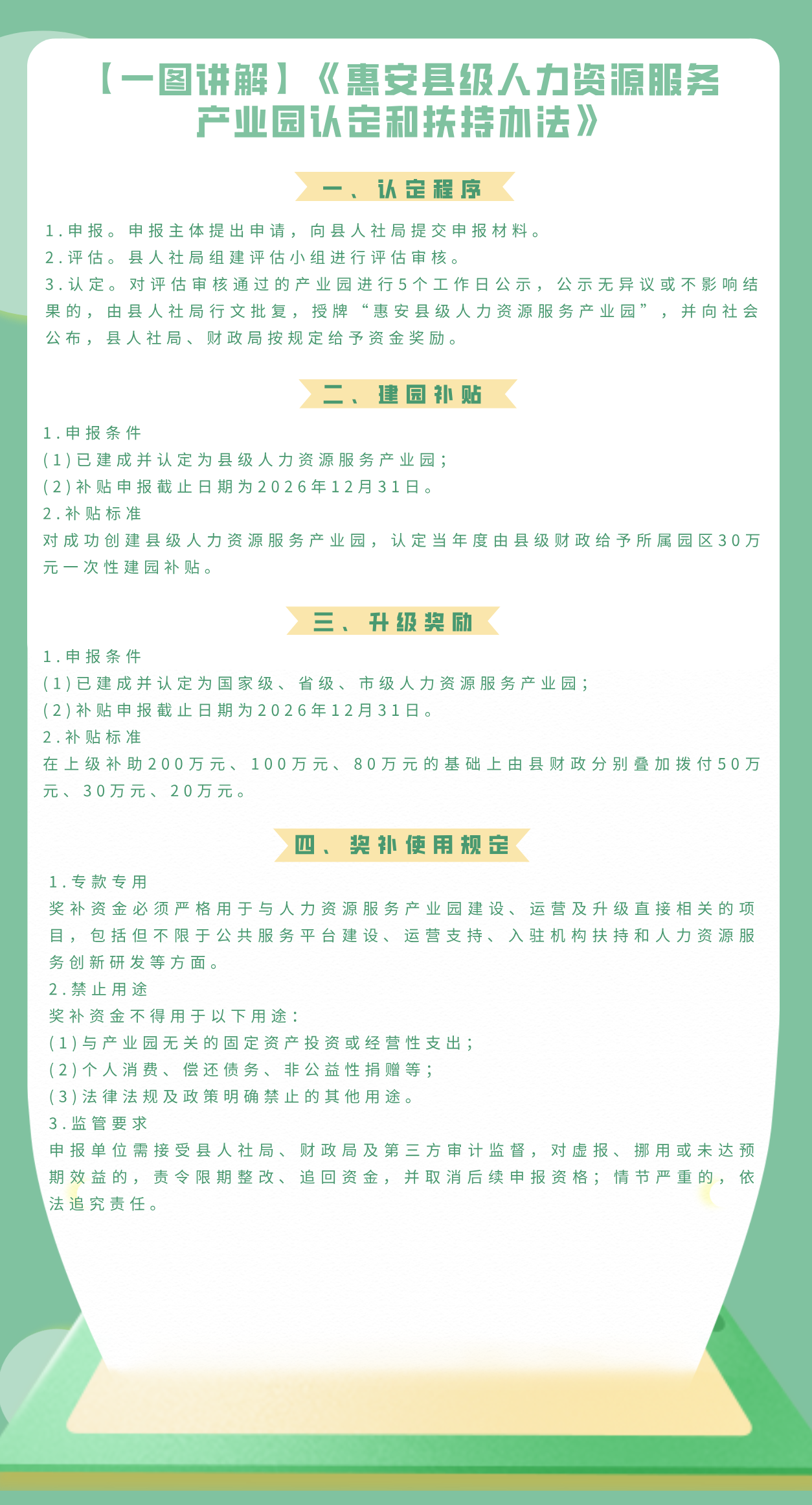 【一圖講解】《惠安縣級人力資源服務產業園認定和扶持辦法》
