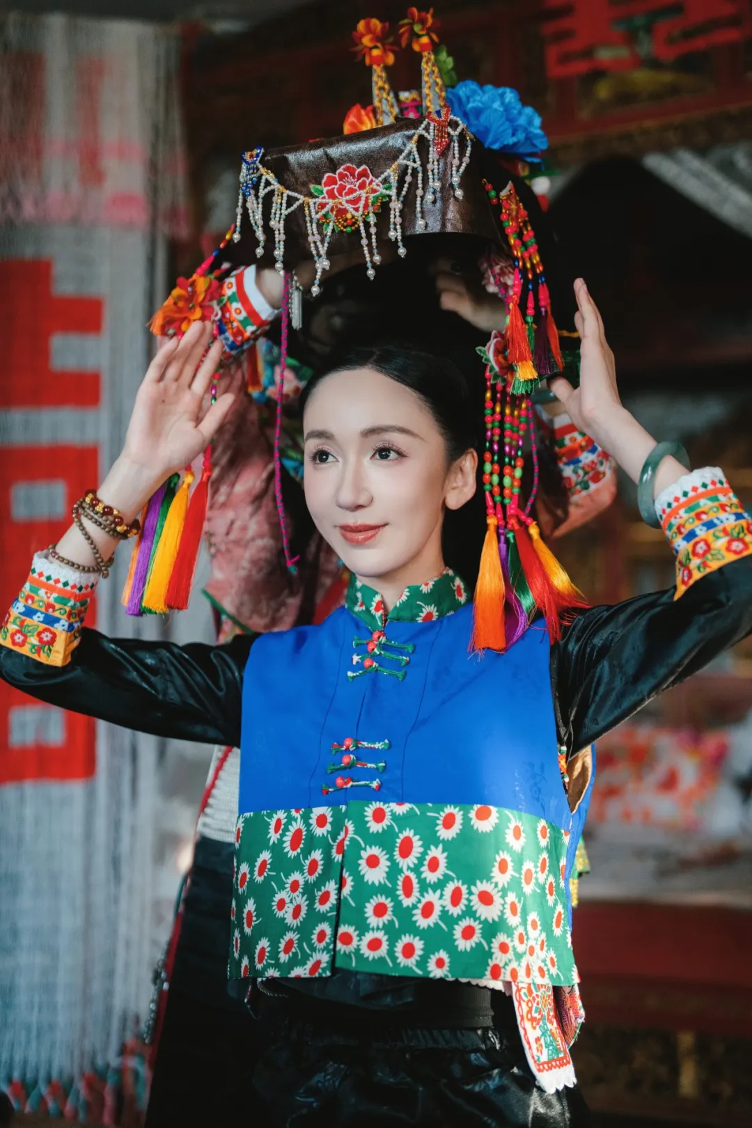 婁藝瀟也換上了現(xiàn)代惠女服套裝