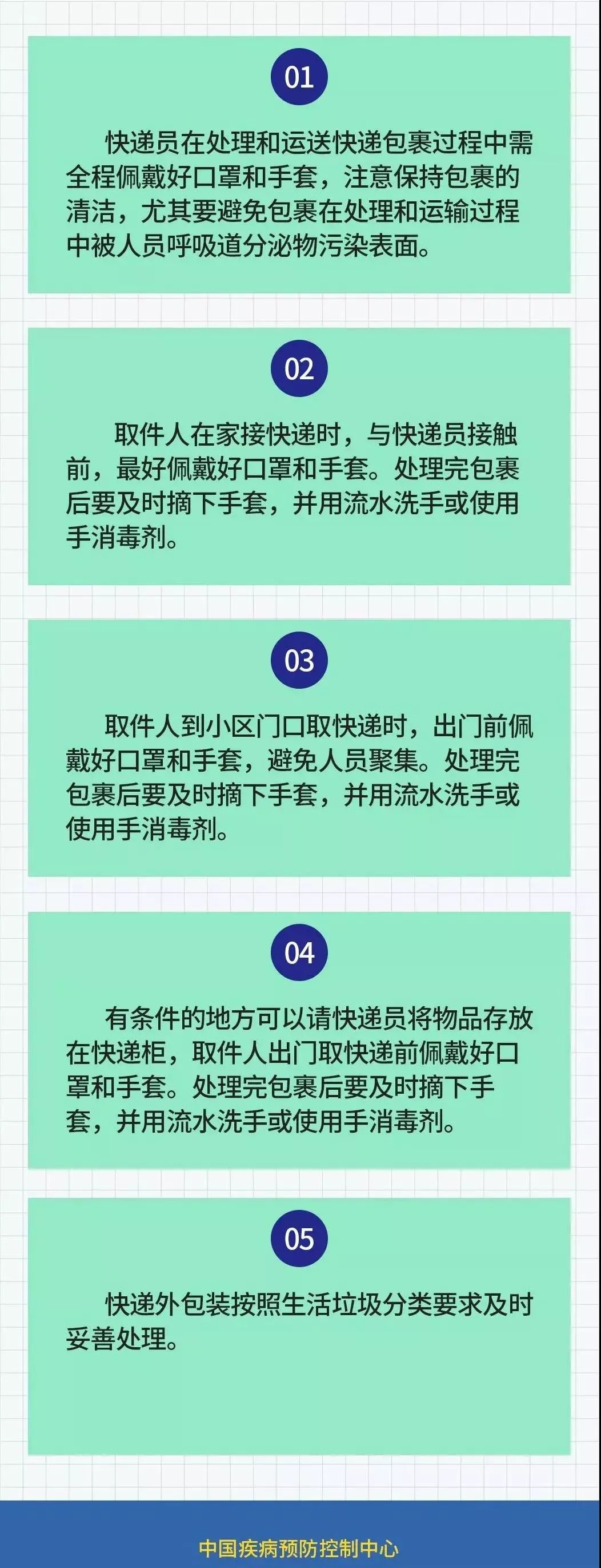 在與顧客簽收快遞過程中,要佩戴口罩、手套,減少直接接觸,交談時至少保持1米以上的社交距離。在醫療衛生機構等特殊場所收發快遞后,要及時做好手衛生。
